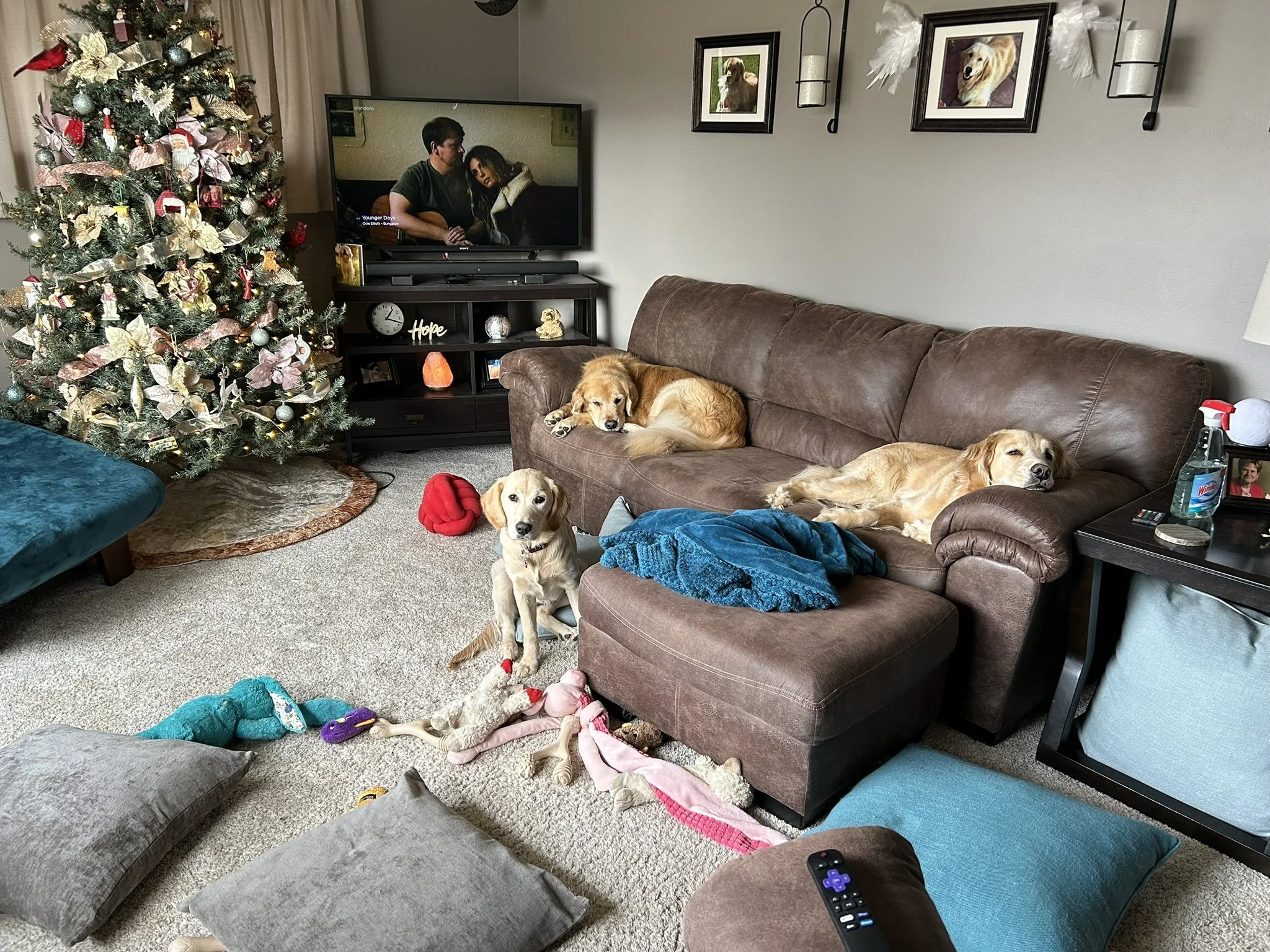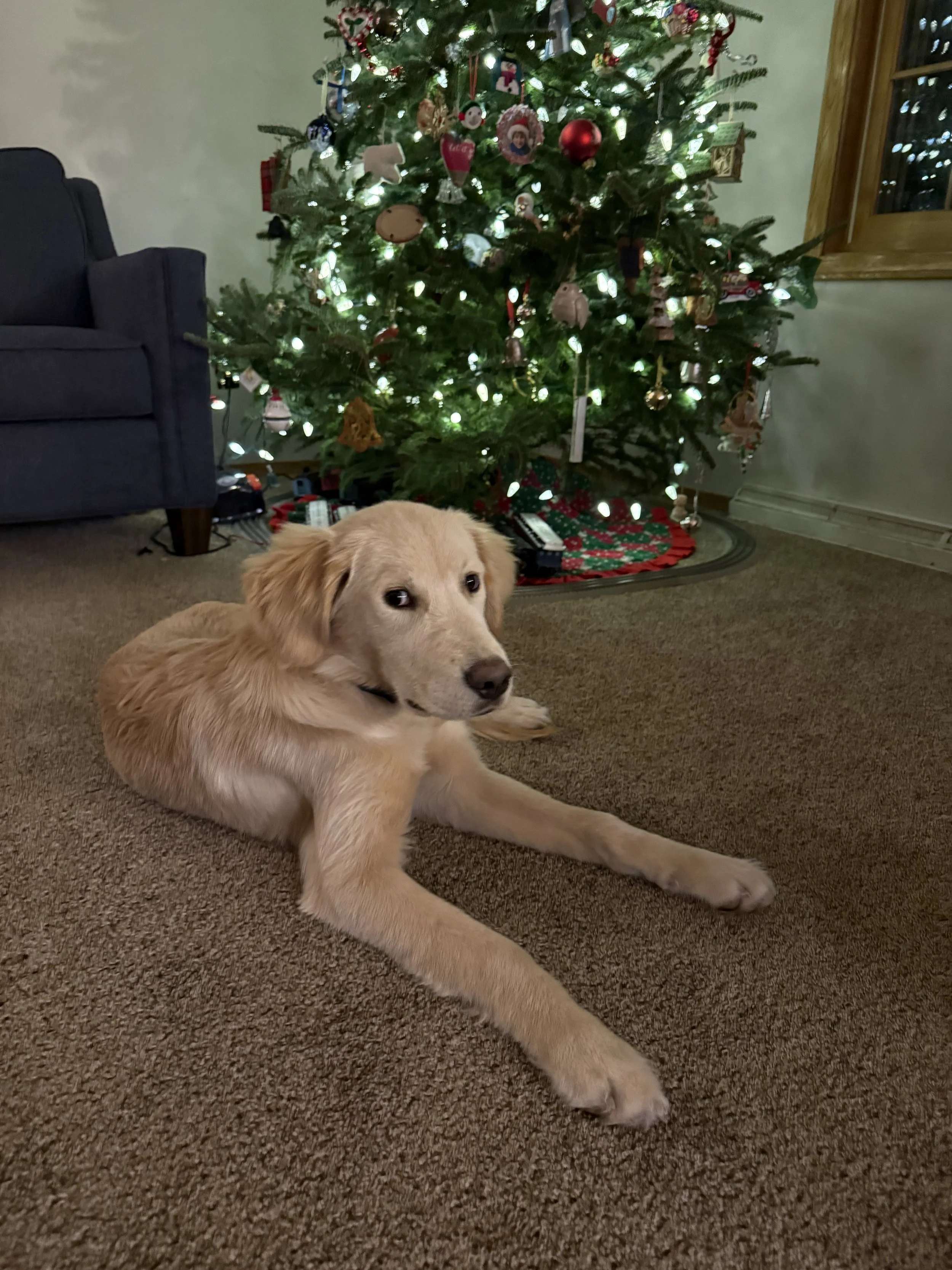 December 18- Moses (Mr. Yellow) is a very good boy, but he definitely has the guilty facial expression of a puppy that just stole an ornament off of the tree. If any ornaments are missing, Moses should be brought in for questioning!